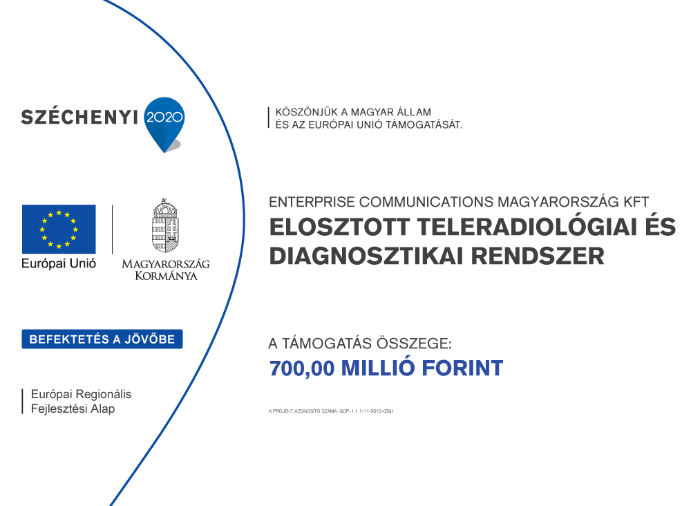 Az Enterprise Communications Magyarország Kft. és a Magyar Fejlesztési Intézet Nonprofit Zrt. „Elosztott teleradiológiai és diagnosztikai rendszer” elnevezésű közösen megvalósított projektje megteremtette az információs technológiai alapot egy decentralizált teleradiológiai rendszer kifejlesztésével, amely az osztott tárolási és feldolgozási környezet alkalmazásával hatékonyan, jól skálázhatóan, magas rendelkezésre állás mellett támogatja az intelligens diagnosztikai eljárásokat, ezzel pedig egy gyors, hatékony és költségcsökkentő megoldást nyújt.